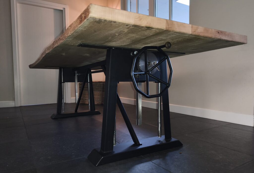 Deze in hoogte verstelbare tafel hebben we ontworpen en gemaakt.