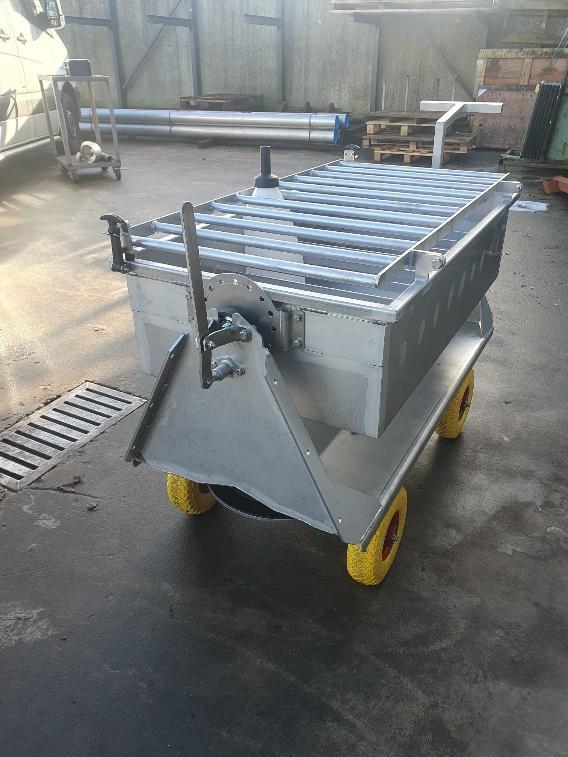 In samenwerking met de klant hebben we deze kar ontworpen, met deze kan is het makkelijker om de melkflessen te vullen, schoonmaken, en de melk bij de kalveren te krijgen. Doordat de kar 2 gestuurde assen heeft kan hij makkelijk maneuvreren door kleine ruimtes.